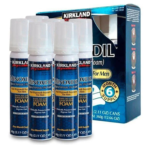 Піна міноксидил (Кіркланд) містить 5% концентрацію діючої речовини (minoxidil). Головна відмінність піни від лосьйону полягає в тому, що в піні немає пропілен-гліколю (речовини, що транспортує препарат до фолікулів волосся), що робить піну міноксидил значно слабкішим і нижчим за ефективністю, ніж лосьйон. Однак, для осіб із чутливою шкірою голови, які не можуть застосовувати лосьйон, піна буде відмінним вирішенням проблеми.